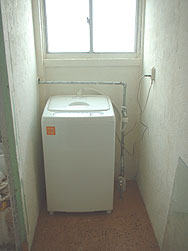 2004/7 壁に新しい石膏ボードを貼りました。 これだけで部屋っぽく明るくなります。 壁の仕上げはまだ未定…。どんな風にしようかしら? 細々した物の収納にオープン棚を設置すると思うし…。 洗濯機置いてから考えよう! コンセントの位置も使いやすいようにちょこっと移動。 床は捨て貼りをして、後日この上にフローリングを敷きます。 |